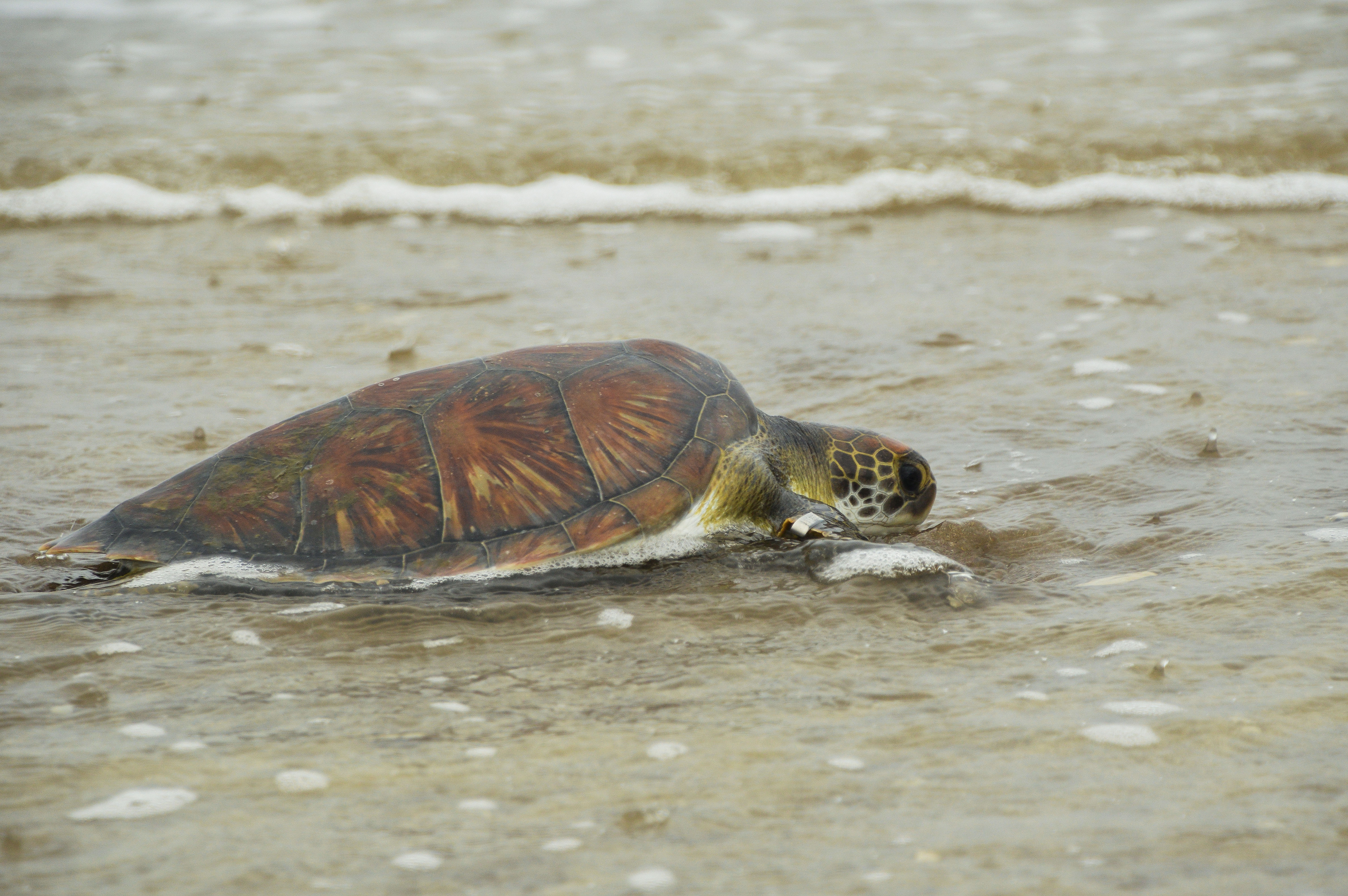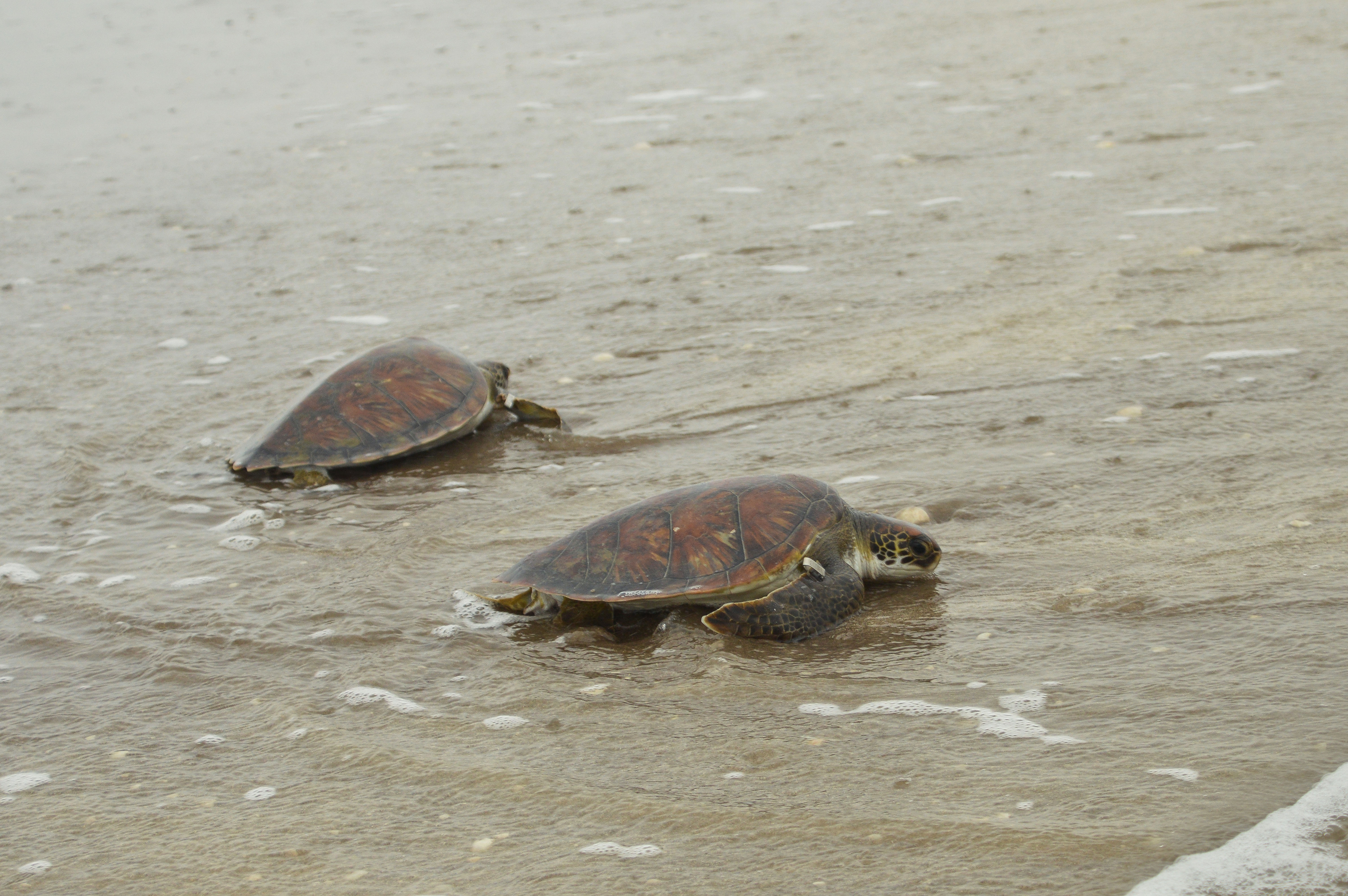 Dos tortugas marinas rescatadas por un pescador regresaron al mar