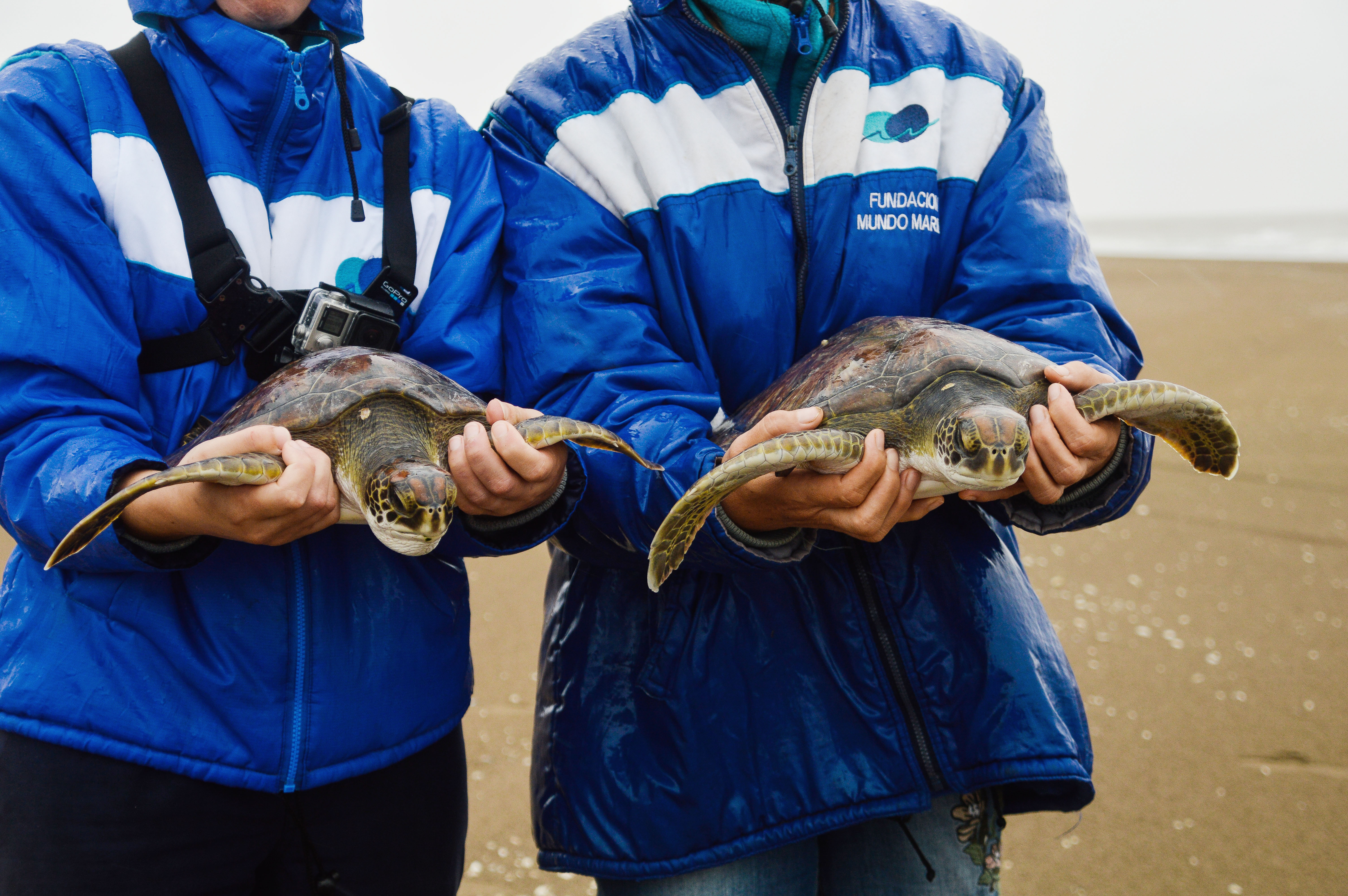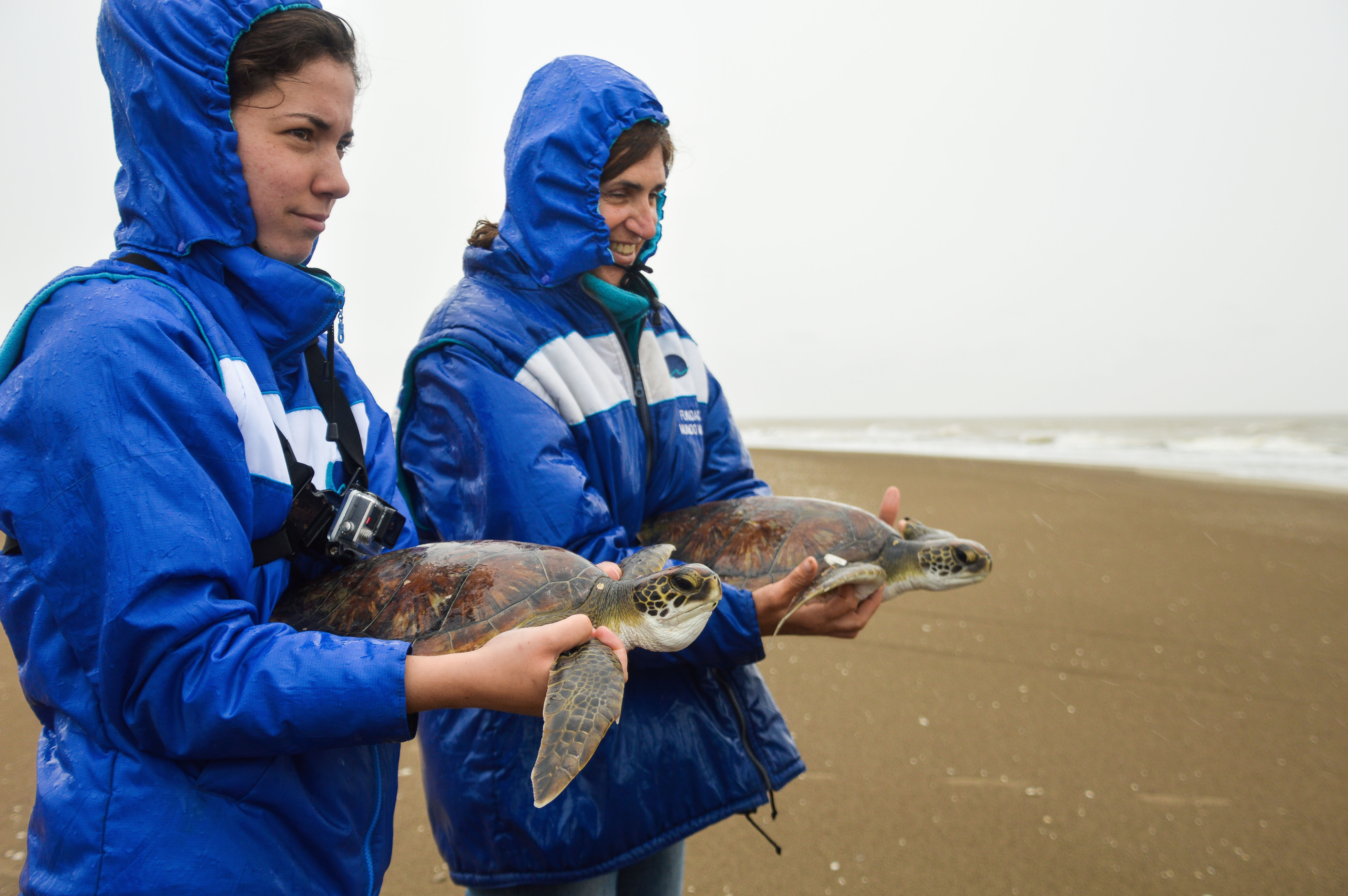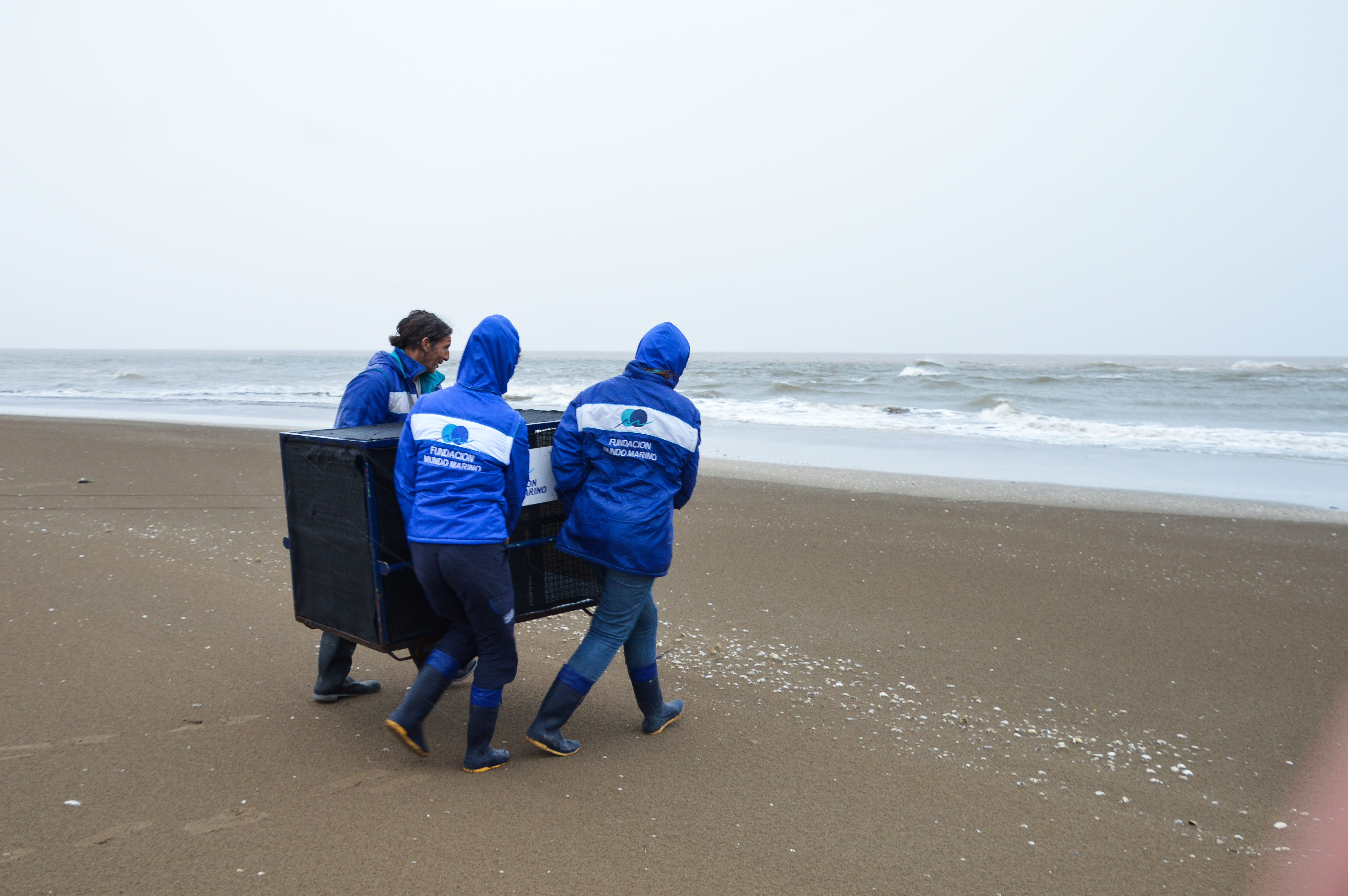A pesar de las inclemencias de una mañana lluviosa, dos tortugas verdes y un lobo marino de Un Pelo Sudamericano (comúnmente conocido como “león marino”) fueron reintroducidos al mar en las costas de San Clemente del Tuyú. Todos los ejemplares habían sido asistidos por profesionales y técnicos de la Fundación Mundo Marino.